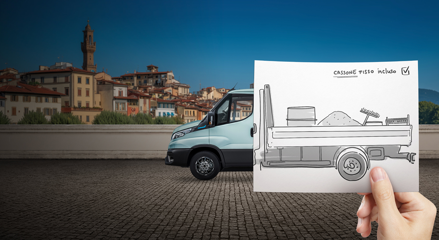 Noleggia con GATE il tuo eDaily cabinato 100% elettrico a partire da 0,55€/km (cassone fisso incluso)